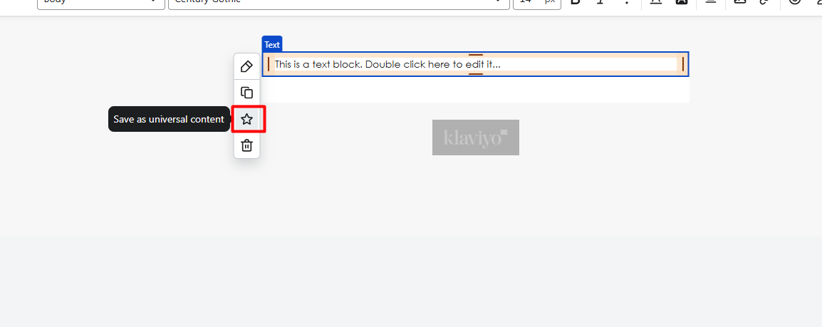 - Click on the newly created content block, then select the Star icon to save it as a Universal Module.