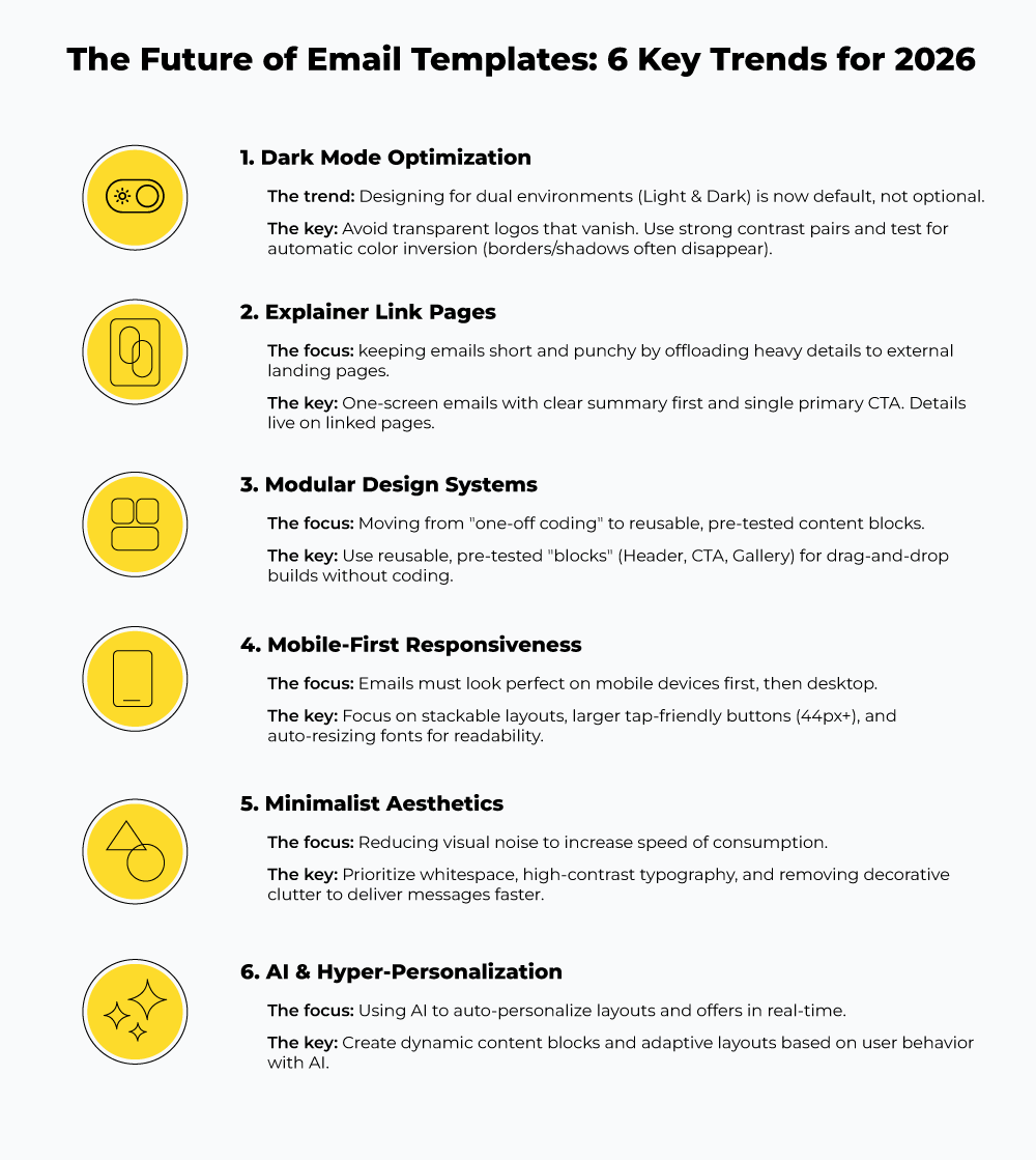 The 2026 inbox won’t wait. From AI-driven blocks to dark mode, here’s your blueprint for next-gen email design...
